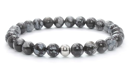 Echtes Schneeflockenobsidian Edelstein Armband mit 6mm Perlen - verschiedene Längen - Heilstein Schutzstein Talisman Glücksbringer Geschenk (Schnee.-Obs., 18CM)